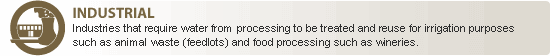 - Industrial applications such as feedlots, dairies, piggeries, food processing and cooling systems